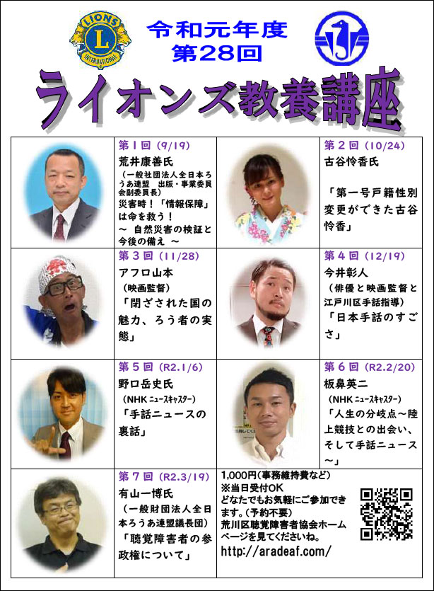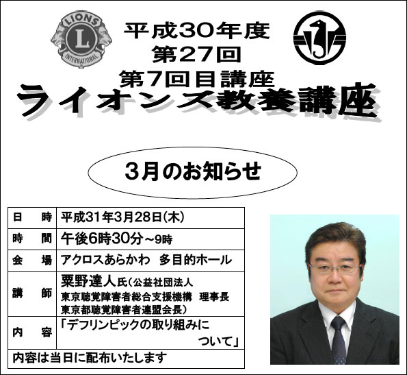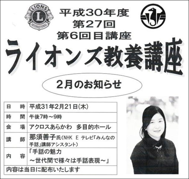 • 今年度の「第34回ライオンズ教養講座」について(聴講者は限定となります)
