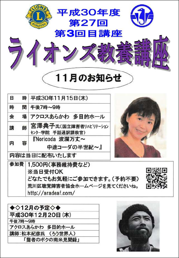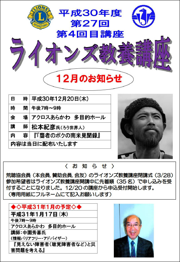 • 今年度の「第34回ライオンズ教養講座」について(聴講者は限定となります)