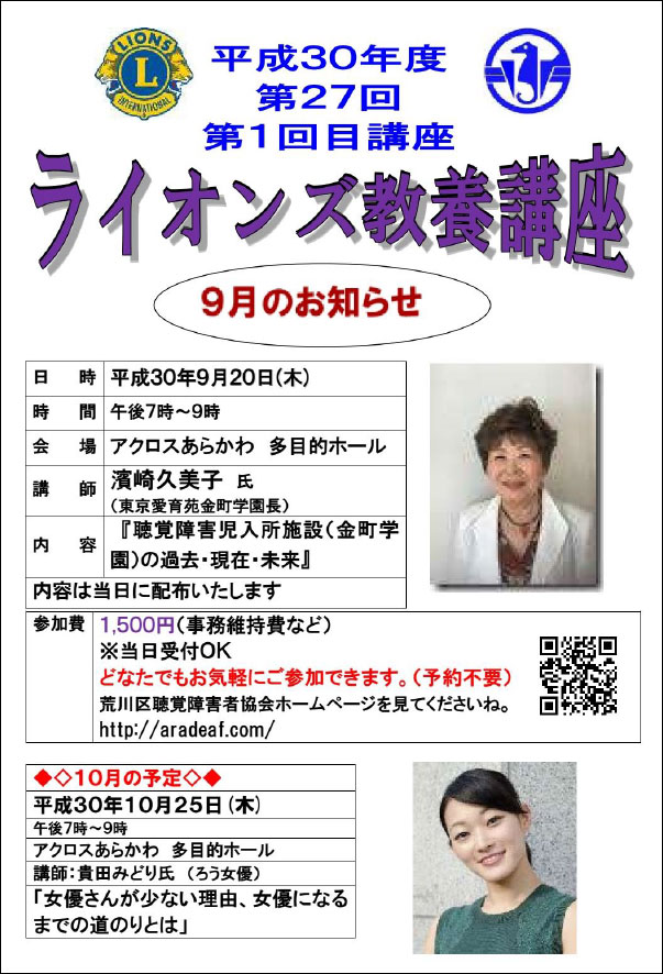 • 今年度の「第34回ライオンズ教養講座」について(聴講者は限定となります)