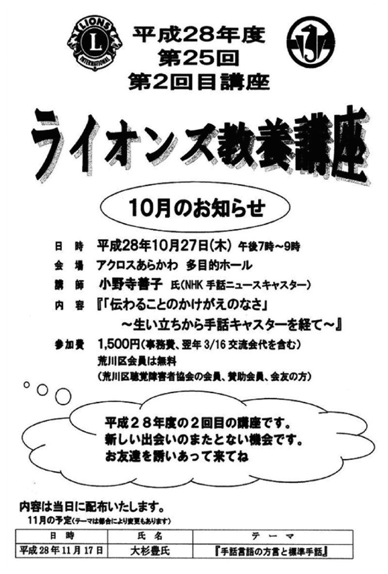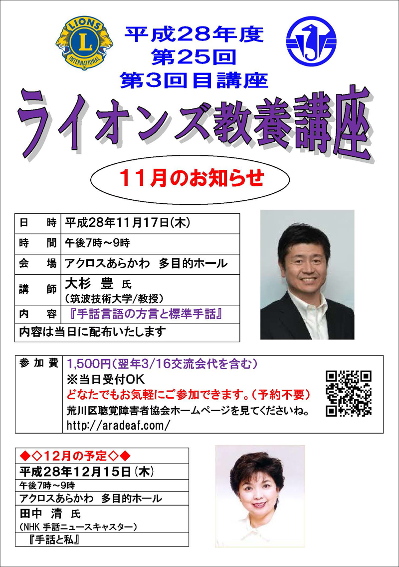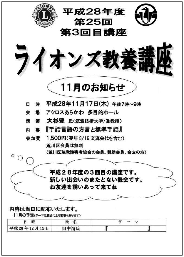 • 今年度の「第34回ライオンズ教養講座」について(聴講者は限定となります)