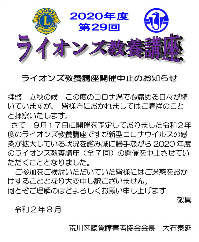 • 今年度の「第34回ライオンズ教養講座」について(聴講者は限定となります)